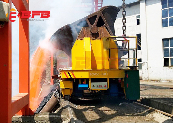 Slag pot transfer car are usually used to transport hot objects, such as molten steel. Because of the high safety requirements for transportation equipment, the material and transmission system of ladle transfer cart are different from ordinary electric rail transfer car. The motor runs and stops at a slow and even speed, so that the ladle electric trolley runs smoothly, reduces inertia, and prevents the splashing of molten steel and steel slag. The interior of the cart body is insulated material, which can effectively prevent the high temperature radiation of the ladle. Moreover, the ladle transfer cart is equipped with two electric motors, so even if the temperature of the molten steel damages one motor, the other motor can operate normally.